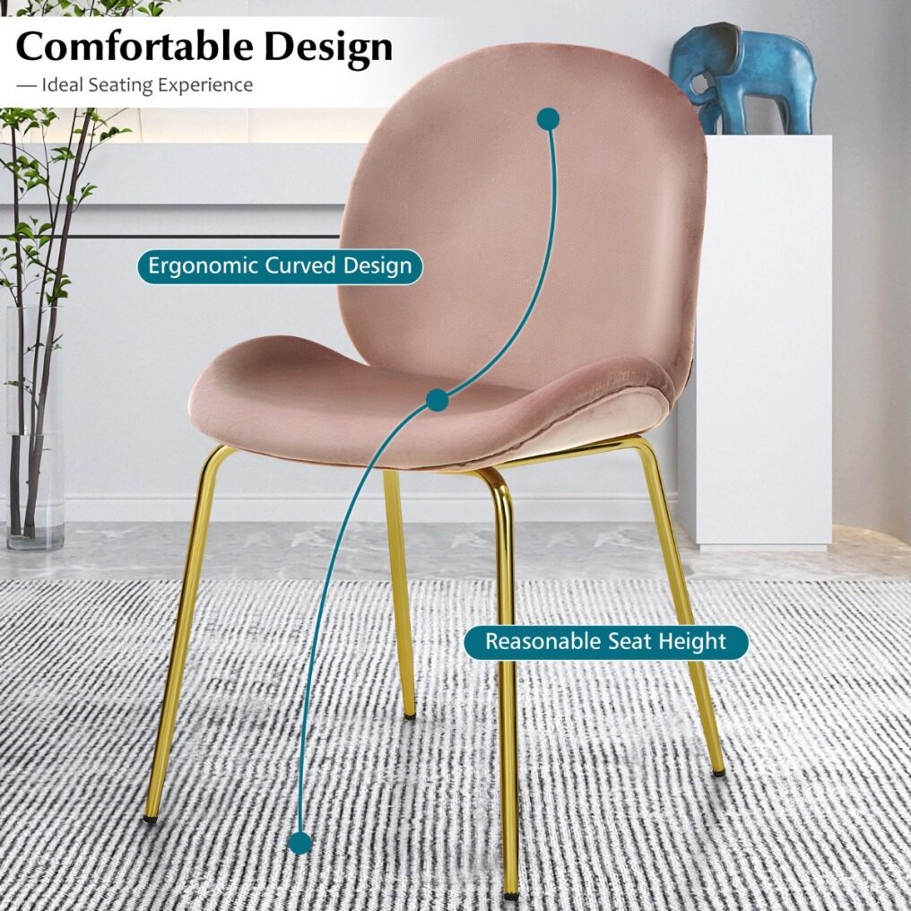 Comfortable & Ergonomic Seating: Designed with a curved back, this chair fits your body perfectly, thus offering enough support to your back. Besides, this upholstered velvet chair has a U-shaped seat, so you will be more comfortable and enjoyable sitting centrally.