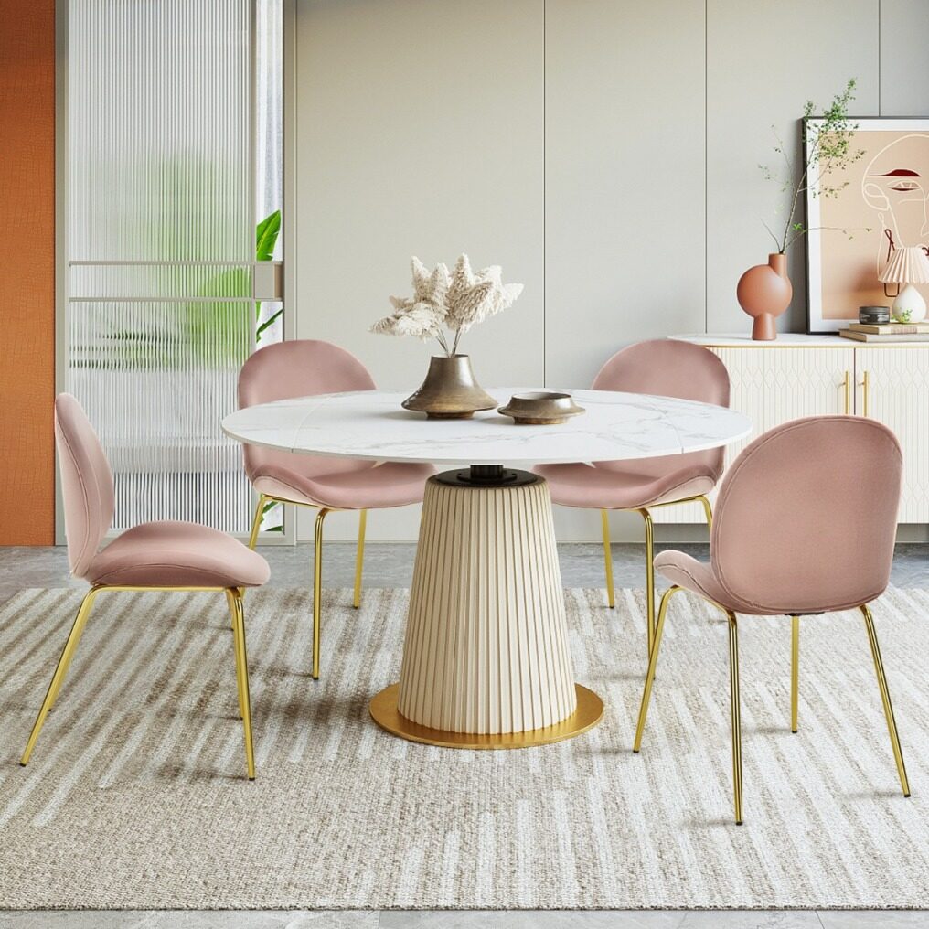 Mid-century Style & Wide Application: The special shape with skinny golden legs makes this set of chairs a pop of luxury to your kitchen, dining room, dressing room, or living room. This leisure chair can serve as a makeup vanity chair, dining chair, side chair, and so on.