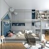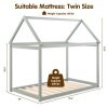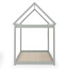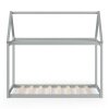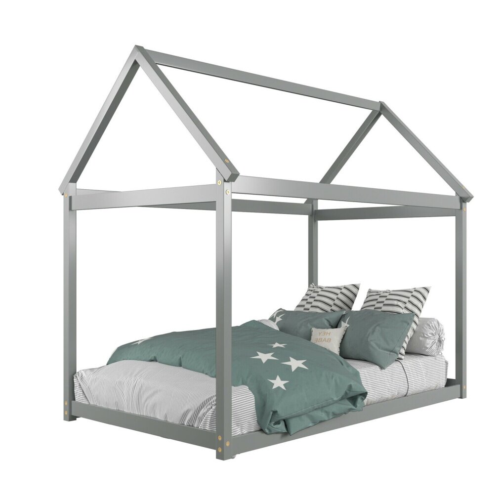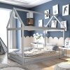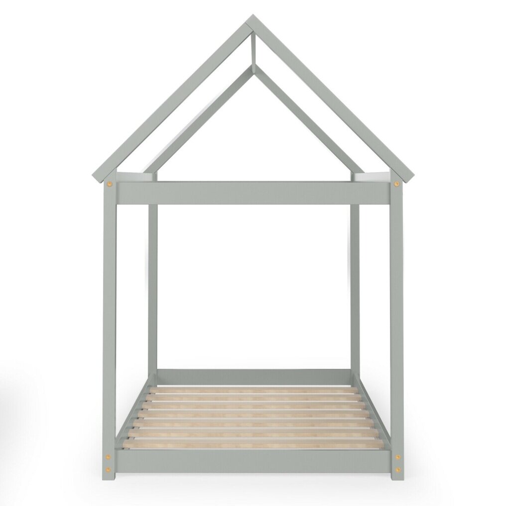 The wood bed frame is designed in a house shape, which is eye-catching and will decorate kid's room well!