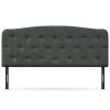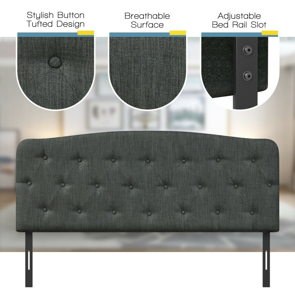 Solid plywood and durable MDF ensures sturdy and durable construction for a long lifespan. The pre-drilled metal bars provide better support for headboard as well. The headboard combines premium polyester fabric and soft sponge into one to achieve comfort and relaxation. 2 adjustable heights is capable of catering to different needs and you can choose the suitable height according to your demand. Unique button ornament and elegant appearance are compatible with various room styles and fit for most full size bed frame.