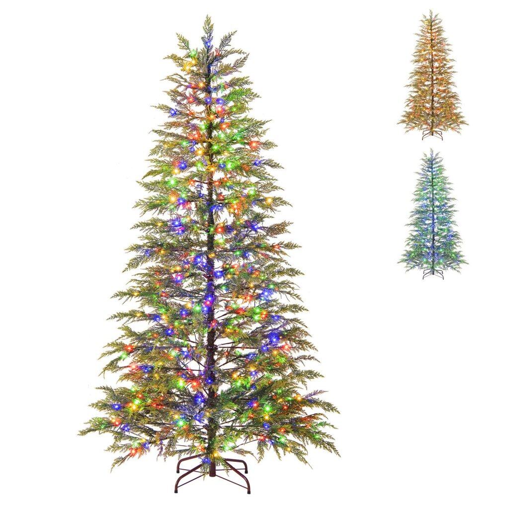 ● Advanced Lighting Options: The Xmas tree is adorned with 390/500 multicolored LED lights to illuminate your holiday celebrations. Featuring 8 distinct lighting modes, it allows you to enjoy a spectacular display of red, blue, yellow, and green lights, perfectly blending to create a vibrant and festive atmosphere.