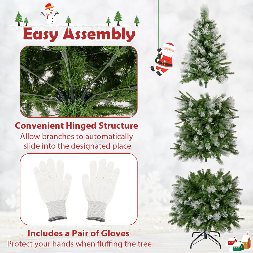 ● Hinged Structure for Easy Assembly: This artificial Xmas tree is equipped with convenient hinged structures, allowing branches to automatically slide into the designated place. Additionally, the tree divides into 3/3/4 sections with a foldable metal stand, complete with a pair of gloves for easy assembly and disassembly.