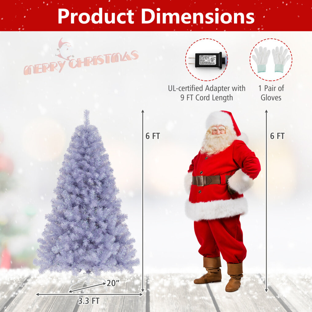 Mesmerizing Visual Display: This 6/7.5 ft tall artificial Christmas tree boasts an impressive array of 688/1300 branch tips, each adorned with multi-colored reflective films that enhances the tree's sparkle and shine. Plus, it is available in 4 stunning colors: deep purple, fruit green, pink, and lavender.