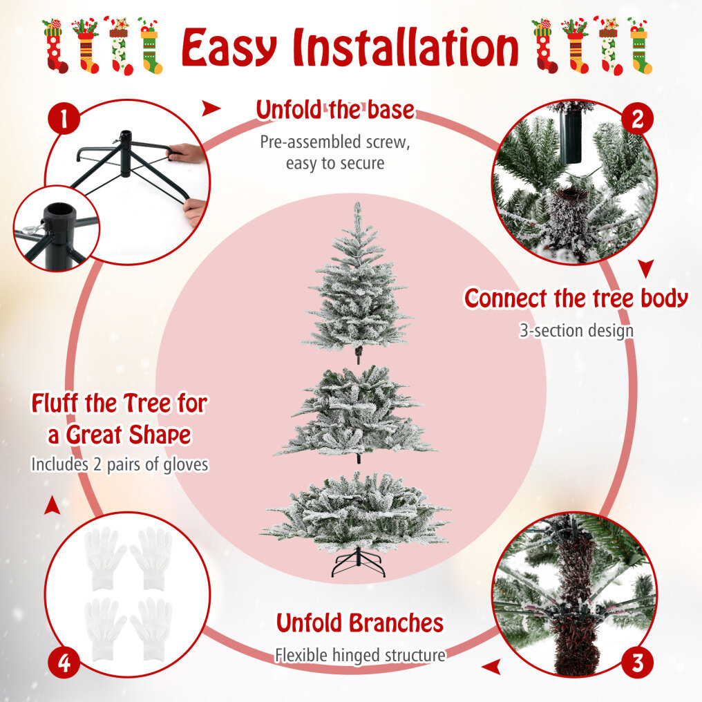 -Features thick snow flocking, capture the winter wonderland essence