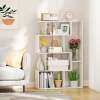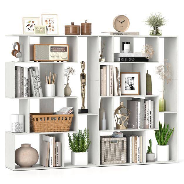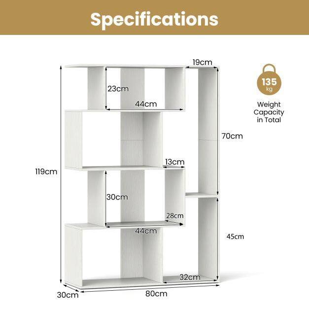 Effortlessly enhance the organization and style of your home with this versatile 4-tier bookshelf. Featuring a modern design with 6 compartments of various sizes, it offers ample space to elegantly display your books, plants, and décor items. Crafted with thickened boards and a reinforced back panel, this bookshelf guarantees long-lasting durability, providing a stable base for your belongings with anti-slip foot pads. Two anti-toppling devices are included for enhanced security, ensuring a worry-free experience. Suitable for diverse indoor settings, from living rooms to offices, this piece seamlessly blends in, elevating any environment. Maintenance is a breeze with its smooth, waterproof surface, allowing you to keep it looking new effortlessly. Say goodbye to clutter and hello to a well-organized living space with this functional and stylish bookshelf!