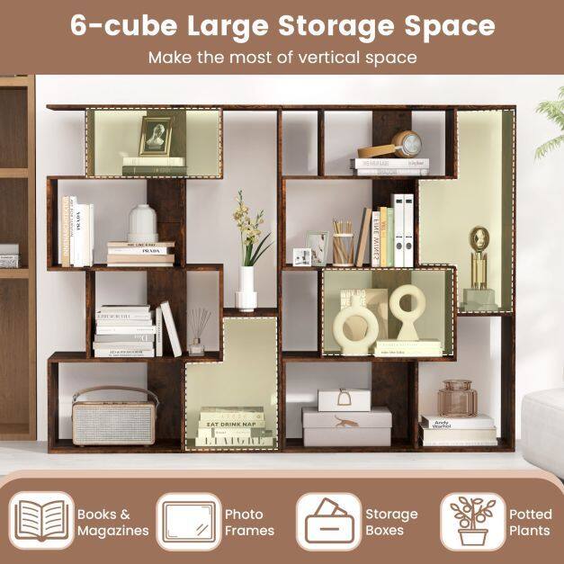 4-Tier LargeStorage Space:Accommodate your books, plants, and decor items stylishly with 6 compartments of various sizes. Keep your belongings organized for a clutter-free environment, enhancing your living space effortlessly.