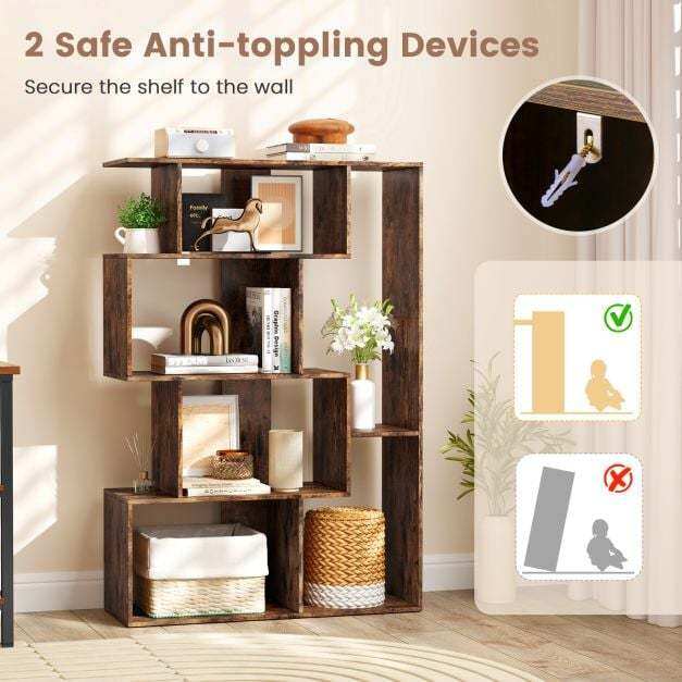 Enhanced Security: Prioritizing your loved ones' safety, we include 2 anti-toppling devices with this bookshelf, securing it to the wall. Enjoy added stability to prevent wobbling and tipping, offering protection during accidental collisions for a worry-free experience.