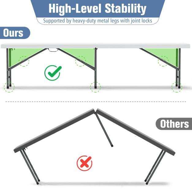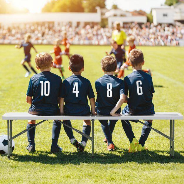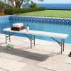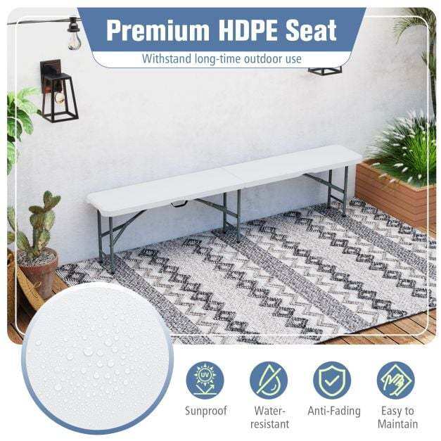 ● Premium HDPE Seat: This folding bench features a 1.58" thickened HDPE seat which is sunproof, waterproof, anti-fading and easy to maintain, providing a smooth and sturdy sitting experience for all users at outdoor events.