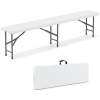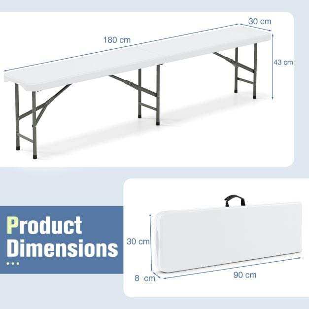 ● Versatile Usage: This 6 ft extra-long folding bench seats up to 4, which is for a wide range of occasions, such as picnic, camping, poolside and competitions. Overall dimension: 71" x 12" x 17" (L x W x H). Folding dimension: 35.5" x 12" x 3" (L x W x Thickness).