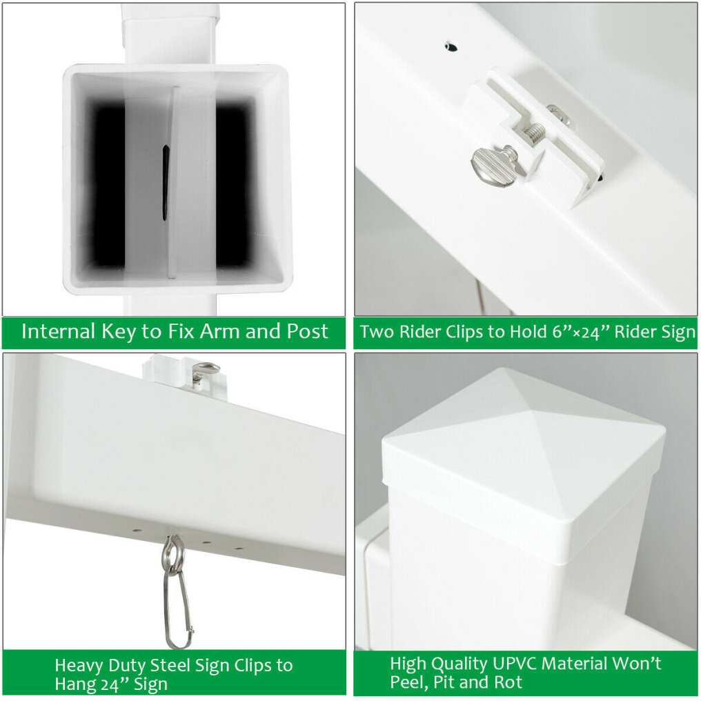 ● Premium UPVC Material: Constructed of high-quality UPVC material, this signpost is engineered to last and will not fade or yellow over time as the vinyl PVC in the market. And a white finish matches the simple style and adds aesthetic value and curb appeal to your real estate offering.