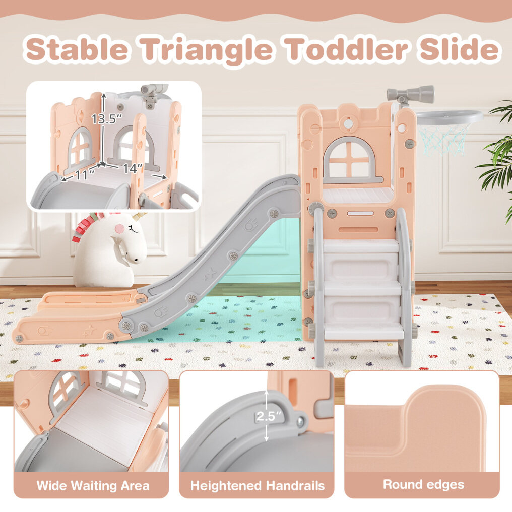 6 in 1 L-Shaped Toddle Slide: The Kids slide offers multifunctional fun with a telescope, climber, slide, basketball hoop, hiding spot and storage area. It’s a complete entertainment hub that keeps your child engaged and active.