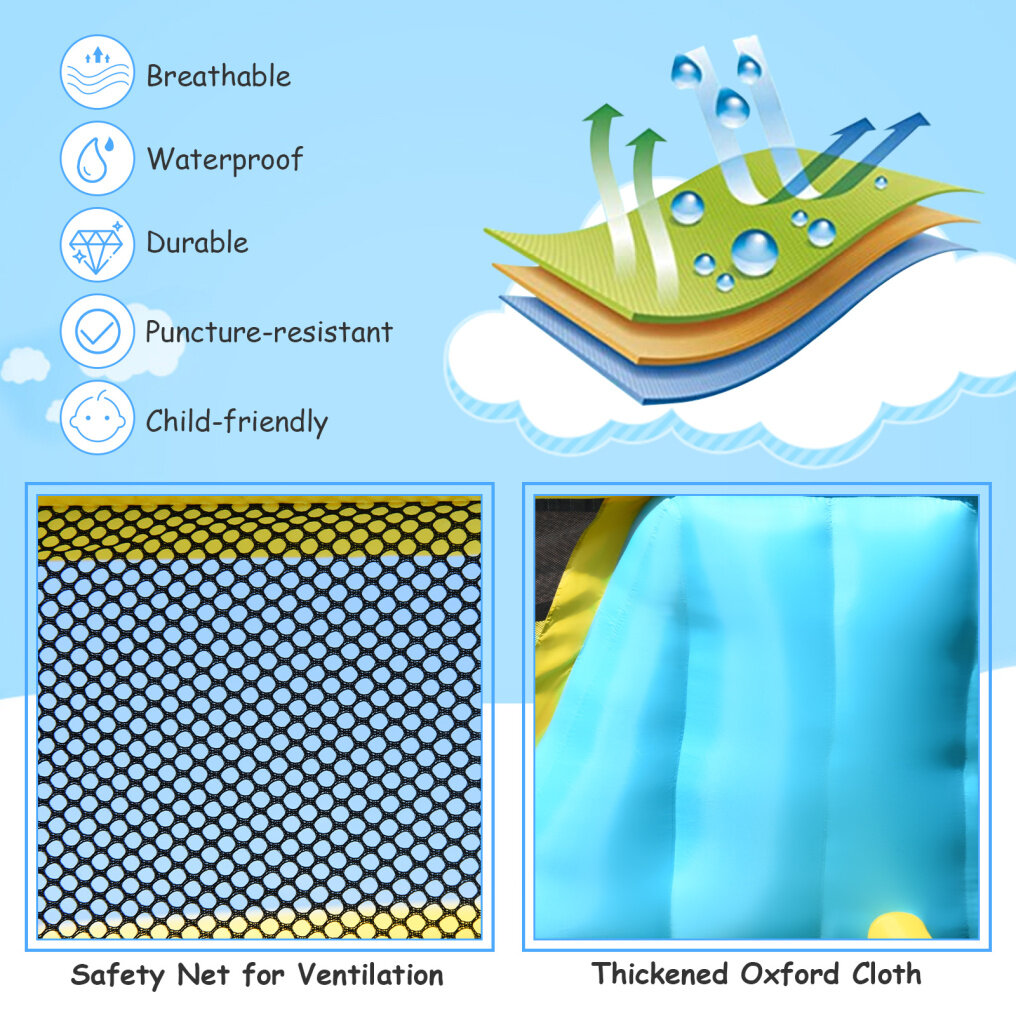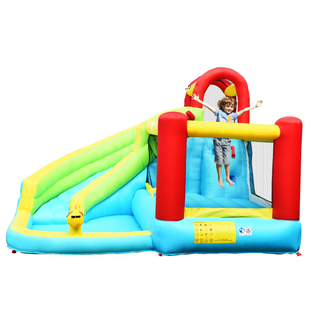 -Features water slide, pool, climbing wall, jumping house & basketball rim