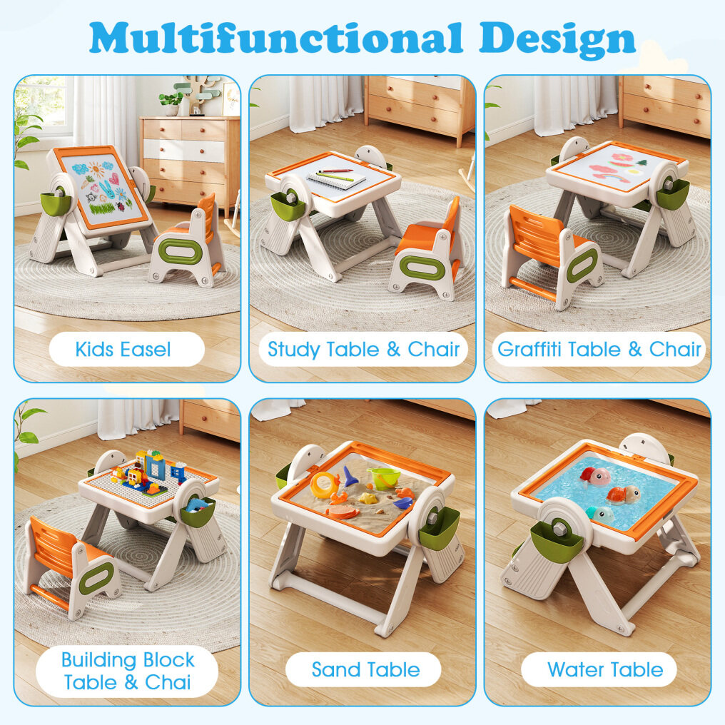 ●Multi-purpose Kids Furniture: The kids activity table and chair set features a double-sided tabletop: one side is a magnetic whiteboard, while the other side is a grooved tabletop. It’s suitable for building blocks, reading, studying, or drawing. Kids can also take off the tabletop to play with sand or water to enjoy added fun.