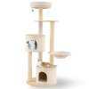 Engaging Entertainments: The cat tree includes 4 scratching posts fully wrapped in natural sisal that is scratch-resistant and wear-resistant, perfect for nail sharpening. Added amusement is ensured with a plush dangling ball equipped with a bell, perfect for hours of playful swatting and pouncing.