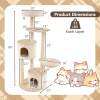 This luxury wood cat tree measures 58 x 152 cm (Dia. x H) and comes with 6 layers for cats to climb up and down. It includes 2 large condos and a cozy padded top perch that offer the perfect spot for relaxation or keeping a watchful eye on the surroundings, while the inclusion of a cozy basket adds an extra layer of comfort. And there are sisal scratching posts and a plush dangling ball with a bell, which not only save your furniture from damage but also keep your cat entertained and active. With a cool bamboo mat inside the condo and soft padded plush fabric on the platforms, our cat house could treat your beloved cats to luxurious comfort. More than that, it is built with a solid plywood frame and thickened base, ensuring excellent stability and preventing any wobble as your cat climbs or lounges. To create a clean environment, the cushions and condo covers are detachable and easy to clean.