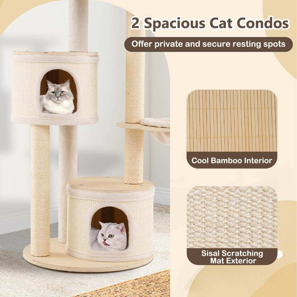 Cool and Comfortable Lying Experience: The condos are lined with cool bamboo interior for added comfort and sisal scratching mat exterior for entertainment and claw maintenance. The perch and basket are covered in skin-friendly plush fabric, offering a soft and inviting space for your cat to rest.