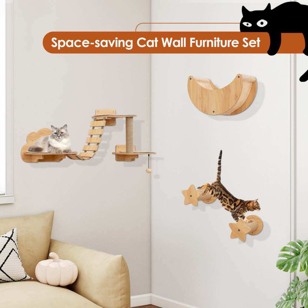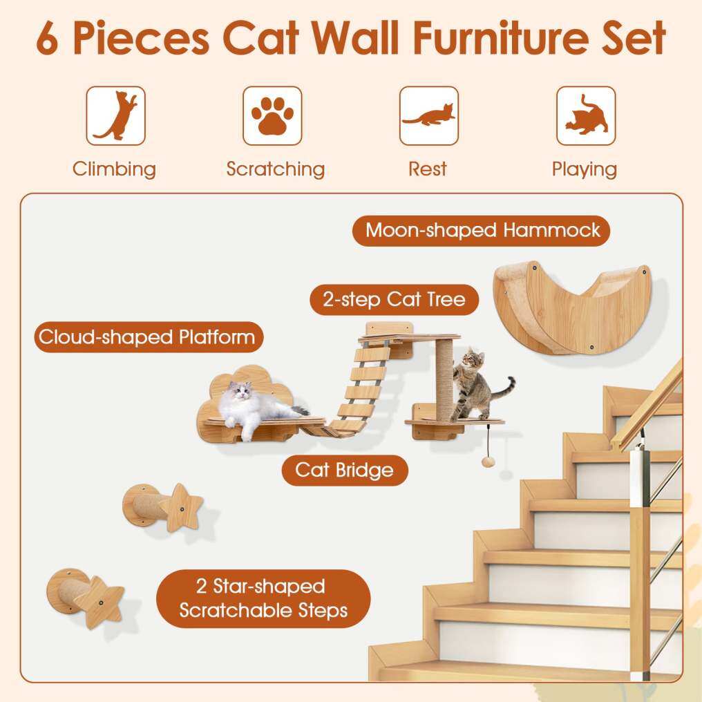 The 6-piece cat wall furniture set offers space for resting, playing, scratching
