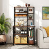 ● Organized Storage Solution: As a 6-tier microwave stand, it includes 12 removable hooks perfect for utensils, multiple open shelves for pots and spices, and a pull-out wire basket for fruits or condiments. This thoughtful layout helps keep your kitchen tidy and essentials within easy reach.