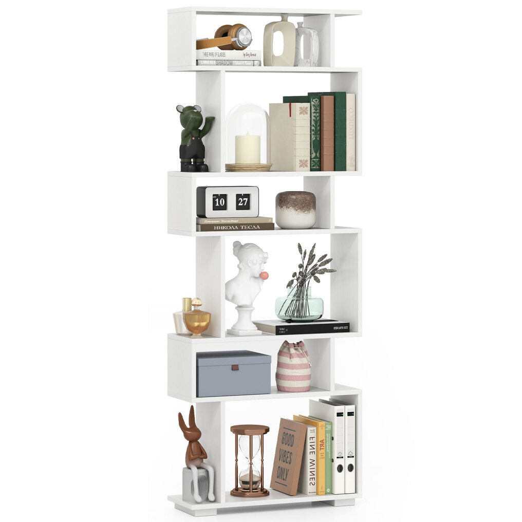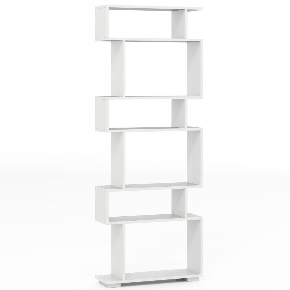 ● 6 Tier Storage Capacity: Maximize your space with the bookshelf's 6 wide shelves, perfect for organizing books, photos, souvenirs, and other essentials. This cleverly designed storage solution brings both functionality and order to your home.