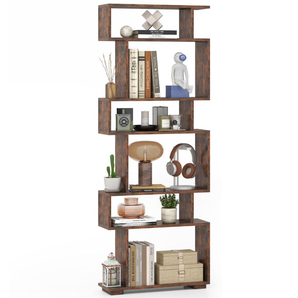 ● 6 Tier Storage Capacity: Maximize your space with the bookshelf's 6 wide shelves, perfect for organizing books, photos, souvenirs, and other essentials. This cleverly designed storage solution brings both functionality and order to your home.