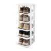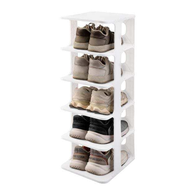 Compact Yet Spacious Storage: Measuring just 27.5 x 24.5 cm, this plastic shoe storage shelf maximizes floor space while offering ample room for 6 tiers of shoes and essential items, such as keys and sunglasses.