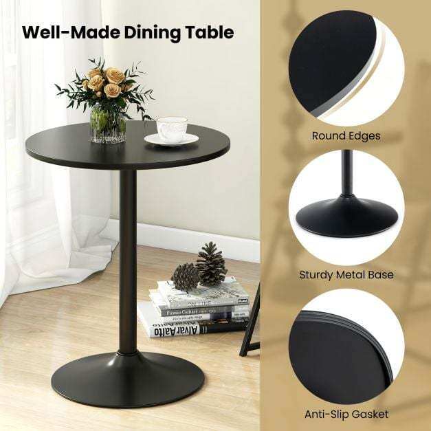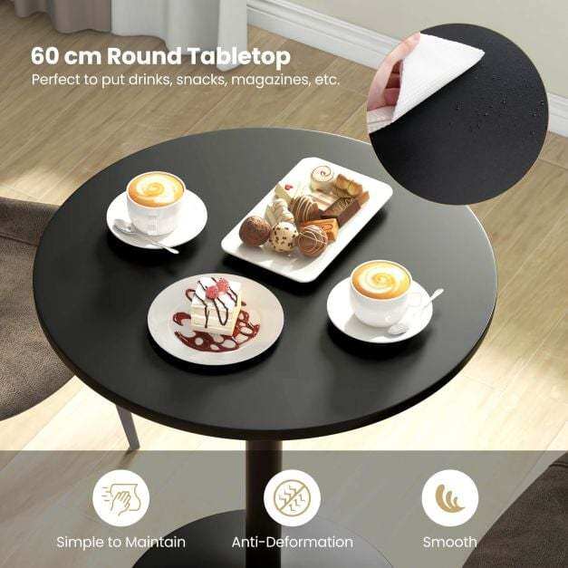 Ideal for Small Spaces: This dining table with 60 cm round tabletop is perfect to put drinks, snacks, magazines, etc. And it's perfectly sized for compact areas, offering a cozy dining solution for 2 people.