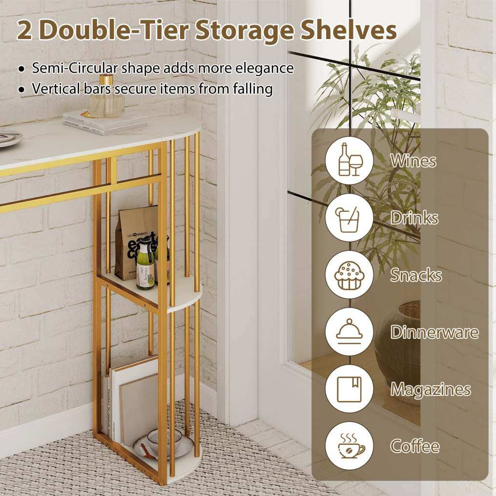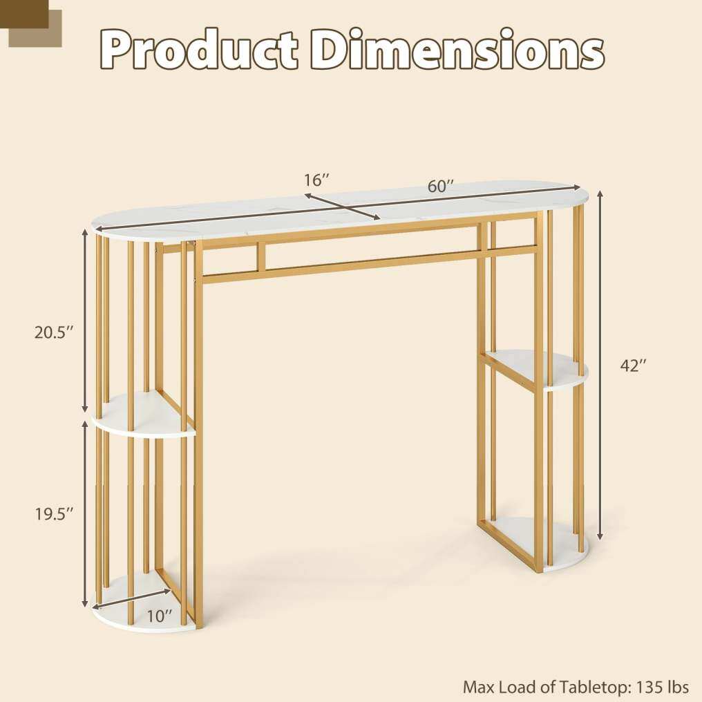 ● Generous Dining & Storage Space: Measuring 60" long, this narrow long table offers plenty of room for meals or gatherings. Each side includes attractive 2-tier semi-circular shelves with supporting pillars, perfect for storing wine, snacks, drinks, magazines, coffee or dinnerware.