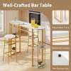 ● Stylish Marble Finish: The tabletop and shelves of the bar table feature appealing faux marble patterns. Combined with a sleek metal frame, the table creates a contemporary look and adds charming elegance to your living space.