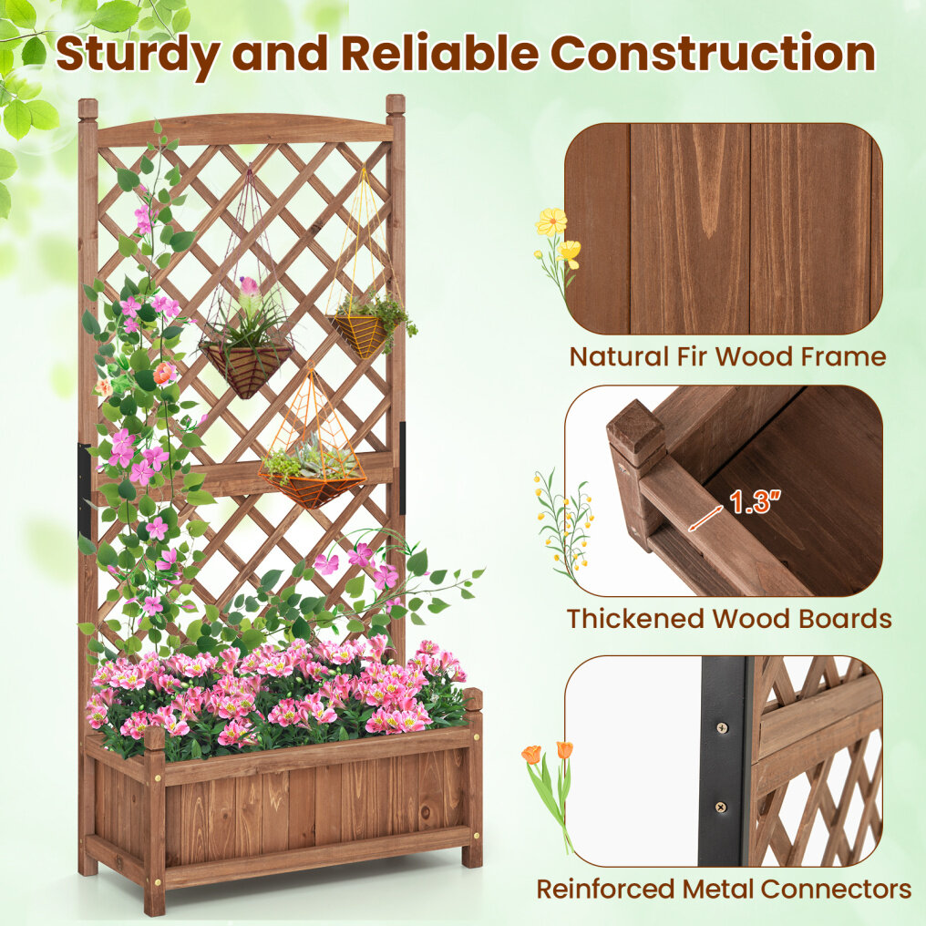 ● Easy Assembly: This planter container with a trellis measures 28" x 13" x 60"/72 x 33 x 151 cm (L x W x H) and the interior size of the planter box is 26" x 10.5" x 7.5"/66 x 26.5 x 19.5 cm (L x W x H). With its simple structure and clear illustrations in the user's manual, it is easy to set up.