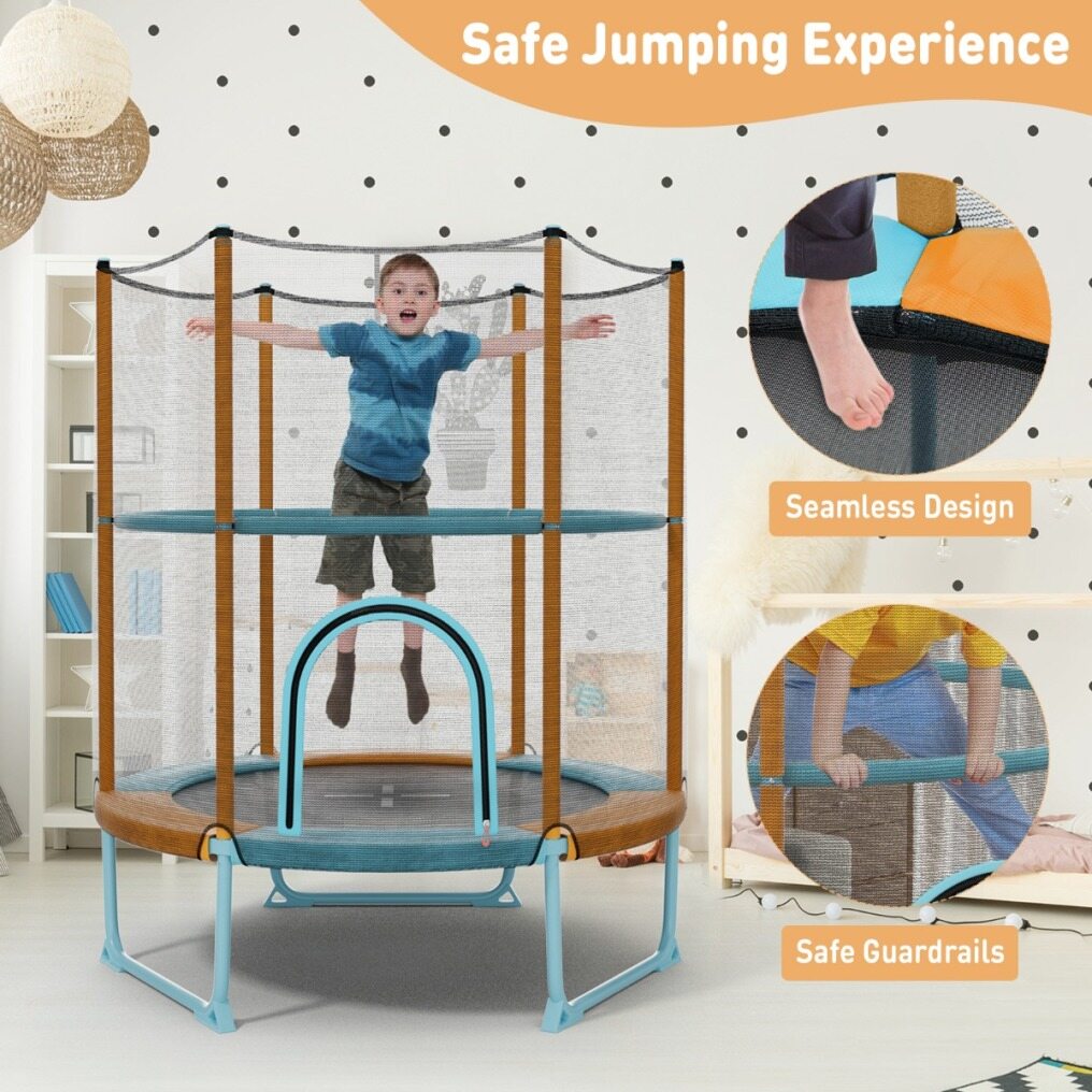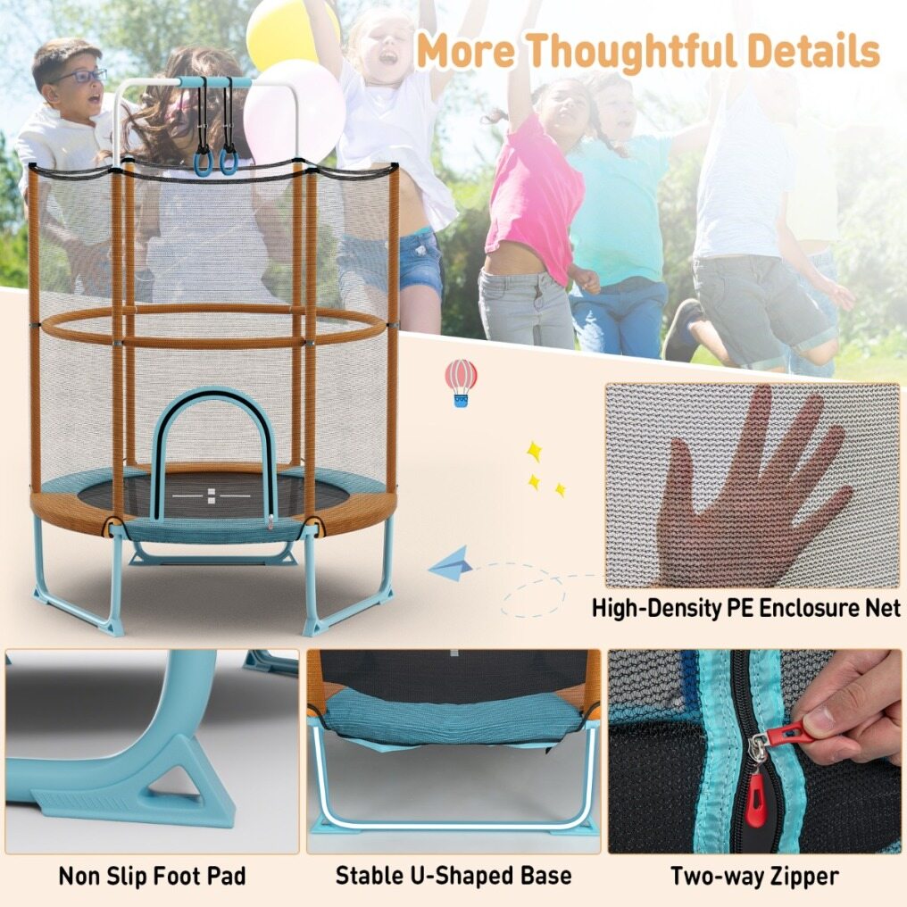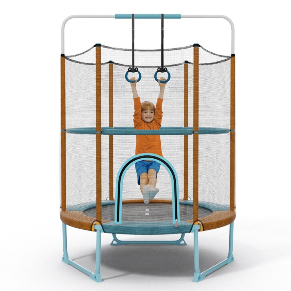 ● Kids' Safety Comes First: The toddler trampoline boasts a heightened safety enclosure net that gives 360° all-round protection for your child. Moreover, the foam padded handrails and fully wrapped rings offer a secure grip. With a no gap design and 3-layer spring pad, toddlers can jump safely.