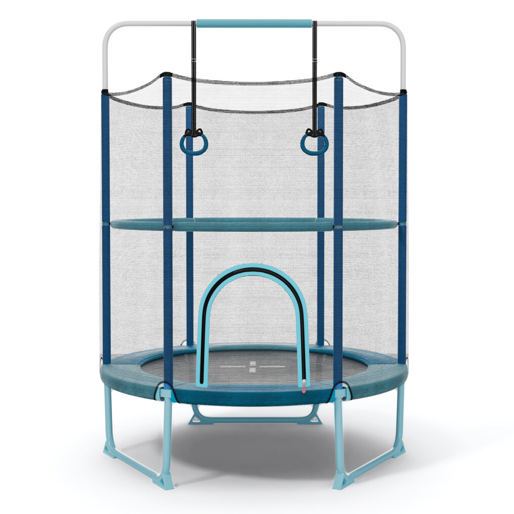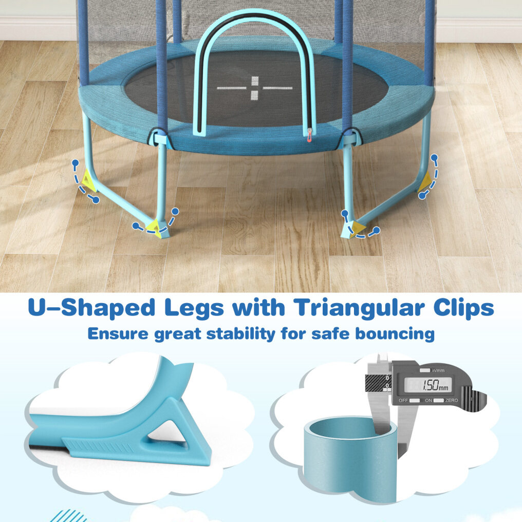 ● Kids' Safety Comes First: The toddler trampoline boasts a heightened safety enclosure net that gives 360° all-round protection for your child. Moreover, the foam padded handrails and fully wrapped rings offer a secure grip. With a no gap design and 3-layer spring pad, toddlers can jump safely.