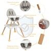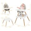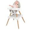 Are you looking for a full-featured baby high chair? This 5 in 1 feeding seat will just fit your needs! It can grow with your kids from 6 month to 6 years old as it can be easily converted into a high chair, toddler booster seat with guardrails, kids table and chair, infant floor seat, or an ordinary stool. Made of solid timber legs and crafted with sturdy pyramid-shaped structure, this high chair offers a reliable and trusted seat without tipping over or moving from its position. BPA free food grade double layer trays has 4 adjustable positions to accommodate different growth stages of toddlers. Padded soft PU leather cushion is comfortable and easy to clean. 5-points safety harness with adjustable length keeps your baby securely in place, keeping your baby safe and cosy.