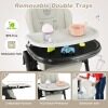 Removable Double Trays: The double trays are able to use separately. The upper tray with groove is suitable for placing bottles or bowels while the lower tray is ideal for playing toy or reading books. Besides, the double trays can be removed and attached to the rear legs when not in use.