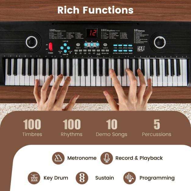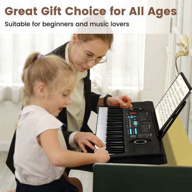 Ideal for Beginners: With 61 keys, this electric keyboard piano is perfectly tailored for beginners of all ages. Its user-friendly controls and inclusion of keynote stickers help new musicians start the learning of playing keyboard.