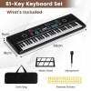 What's Included: This 61-key keyboard set includes a music stand, keynote stickers, microphone, power supply and carry bag. Whether for lessons, practice, or performances, this kit ensures you have all you need.
