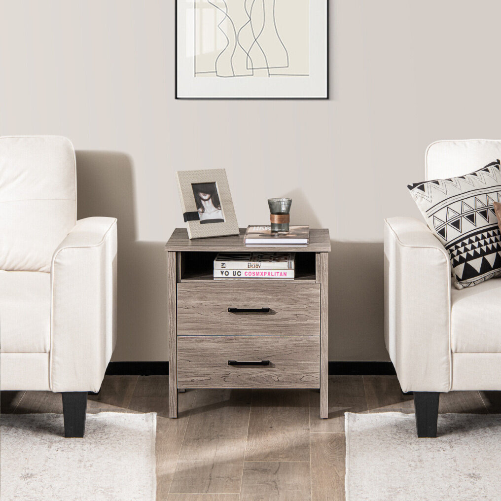 If you are looking for a functional and decorative piece of furniture for the living room or bedroom, this modern nightstand is a good choice! With an open compartment and 2 pull-out drawers, our nightstand is so generous in storage space that can accommodate books and other private items. In addition, you can also place picture frames and beautiful ornaments on the tabletop to decorate the room. What's more, the end table also boasts a sturdy construction. Its 4 stout legs provide reliable support and considerable weight capacity. Besides, the natural colour and elegant look add to the appeal of the nightstand. In all, you can use the unit as a coffee table, a side table or a nightstand.