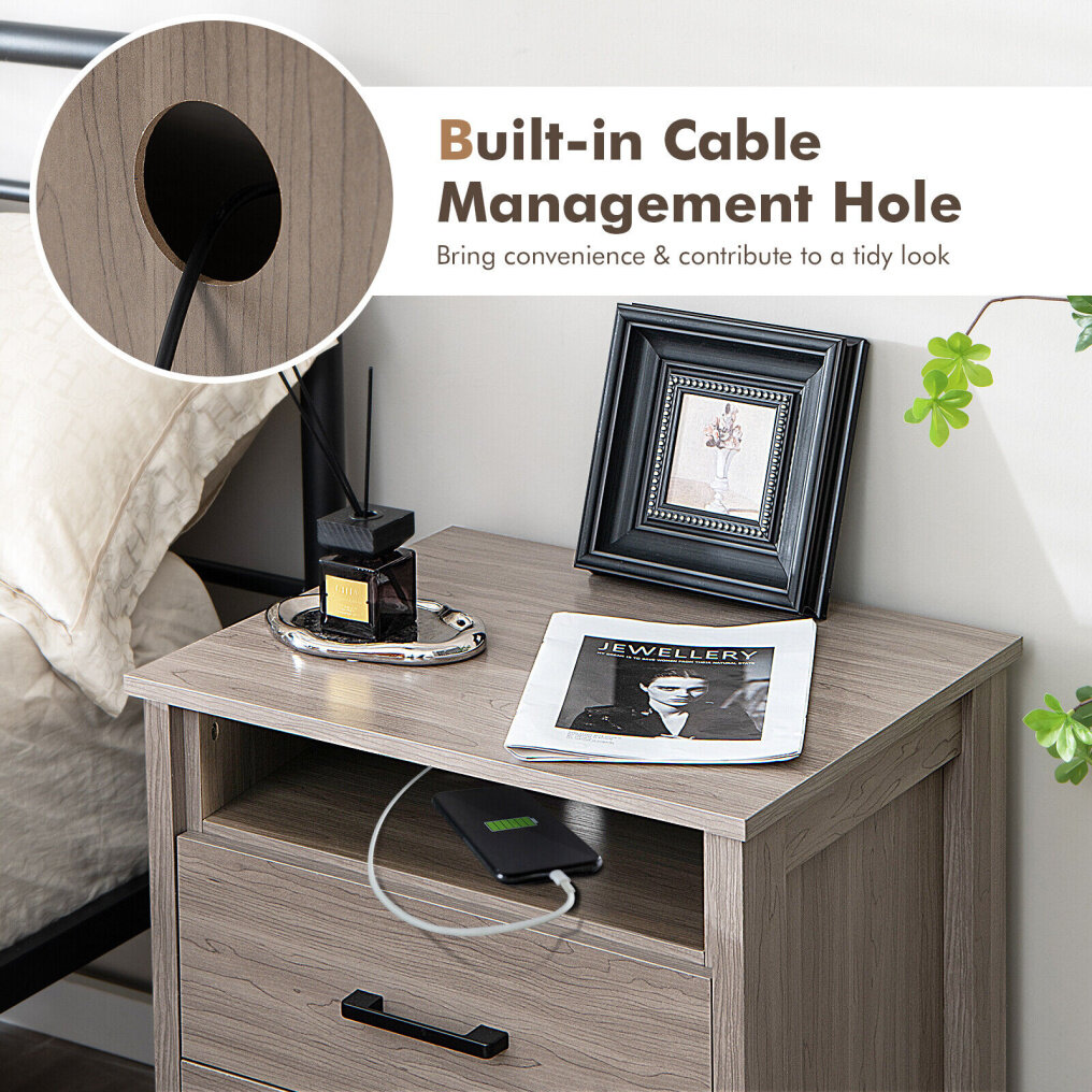 Thoughtful Details: The open storage compartment is equipped with a round hole at the back that serves as cable management for the wires of the phones or pads. Thus, you can keep the tabletop from being cluttered. In addition, the 2 drawers are equipped with convenient handles and smooth slides, allowing you to pull them out with ease.