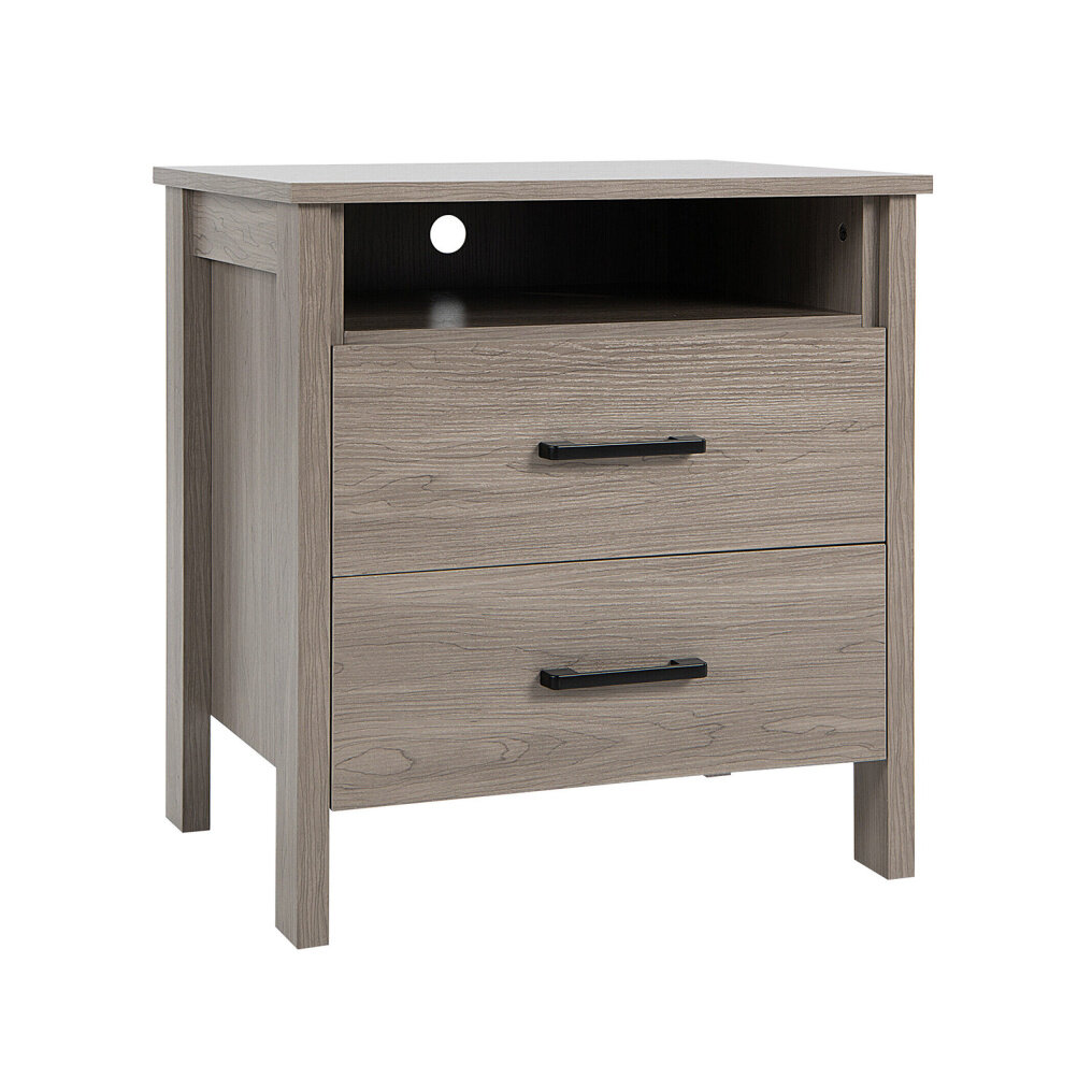 The nightstand has an open shelf and 2 drawers for different storage needs