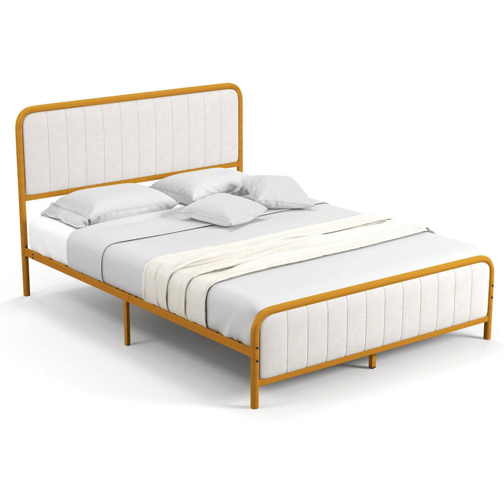 ● Luxury and Elegant Appearance: The bed frame stands out its combination of golden lacquered metal frame and off white velvet headboard, making it an aesthetically-pleasing piece for any decoration from vintage to modern. This contemporary gold bed frame delivers perfect visual effect and looks classic in any bedroom.