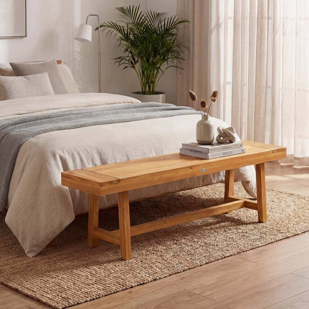 ● Constructed for Stability: With a 2.8" thick bench surface, the solid wood bench is supported by reinforced crossbars for extra steadiness. Additionally, the anti-slip foot pads ensure stable placement on different floor types for your peace of mind.