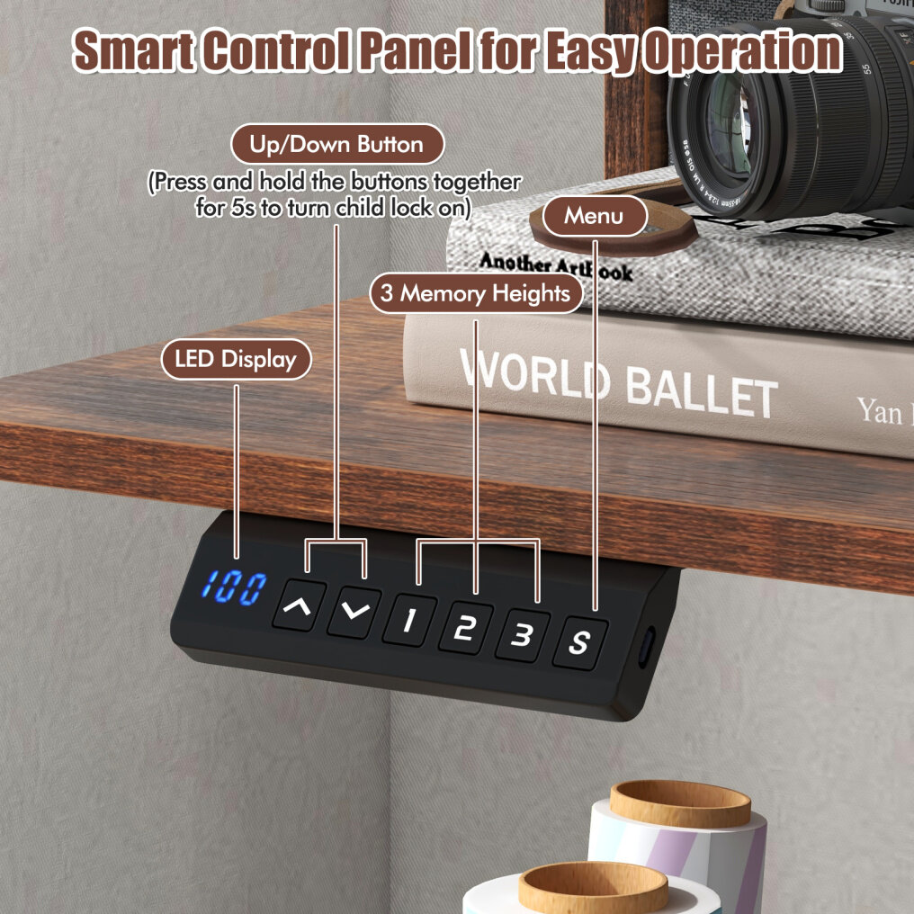 ● Easy Control and Smooth Lifting: The smart control panel makes operation a breeze while the lifting process is quiet and smooth to avoid disruptions. Besides, 3 memory height settings can be saved in advance, thus conveniently achieving your ideal height and position anytime.