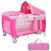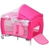 You may consider our Folding Baby Travel Cot Bed. With this bed, you won’t forget taking babies’ bottles, snacks, wipes, toys, etc., since it features a strong storage function to meet all your needs. It features a bi-level bed, diaper changing table, a side zipper door for babies to enter into the lower bed by themselves. It also has a canopy with mosquito net, two casters with brakes, fancy toys, and two retractable rocking support legs which can be used at will. Apart from the bed, all other accessories are removable to ensure it’s easy to carry, suitable for traveling by plane, on a road trip or taking it to the hotel. There are two casters equipped with brakes for easy moving and relocation, and all corners are covered to protect babies.