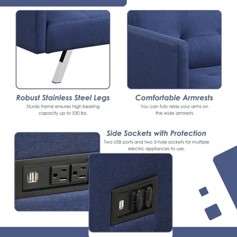 ● Convenient Side Sockets: The modern sofa is equipped with two three-pin sockets and two USB ports for convenient phone or computer charging. This design is practical for you to work or play on the sofa while charging your phone or computer. No more need to worry about inadequate sockets. The cable length of the socket is up to 98.5".