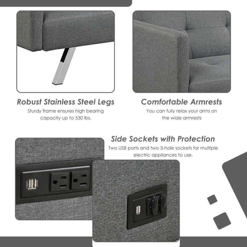● Convenient Side Sockets: The modern sofa is equipped with two three-pin sockets and two USB ports for convenient phone or computer charging. This design is practical for you to work or play on the sofa while charging your phone or computer. No more need to worry about inadequate sockets. The cable length of the socket is up to 98.5".