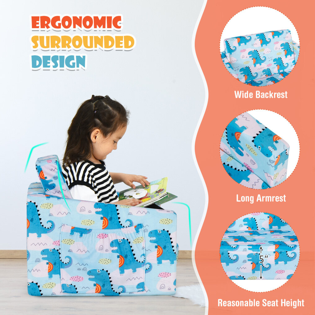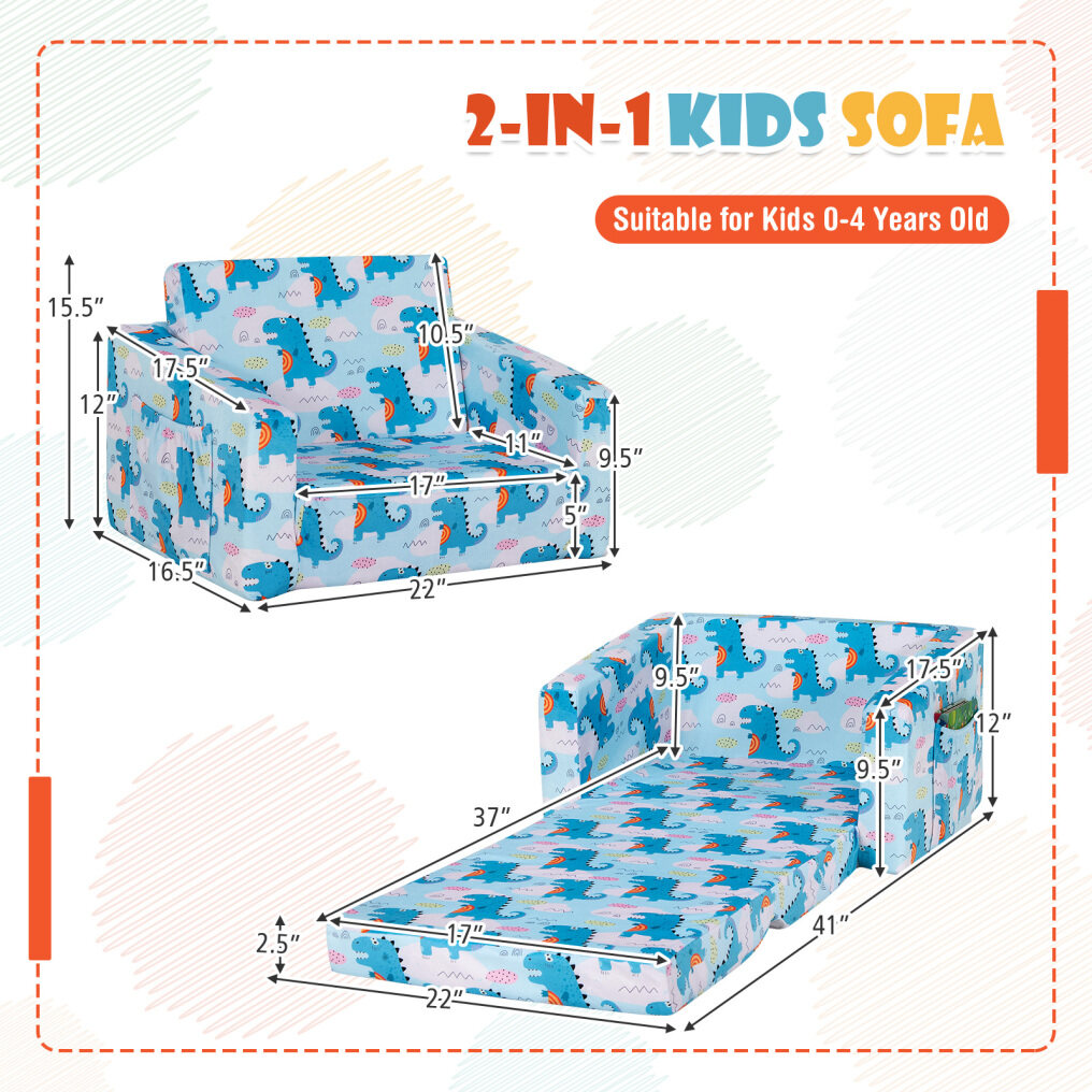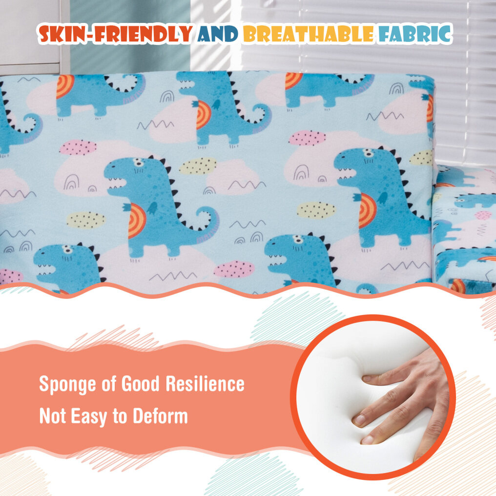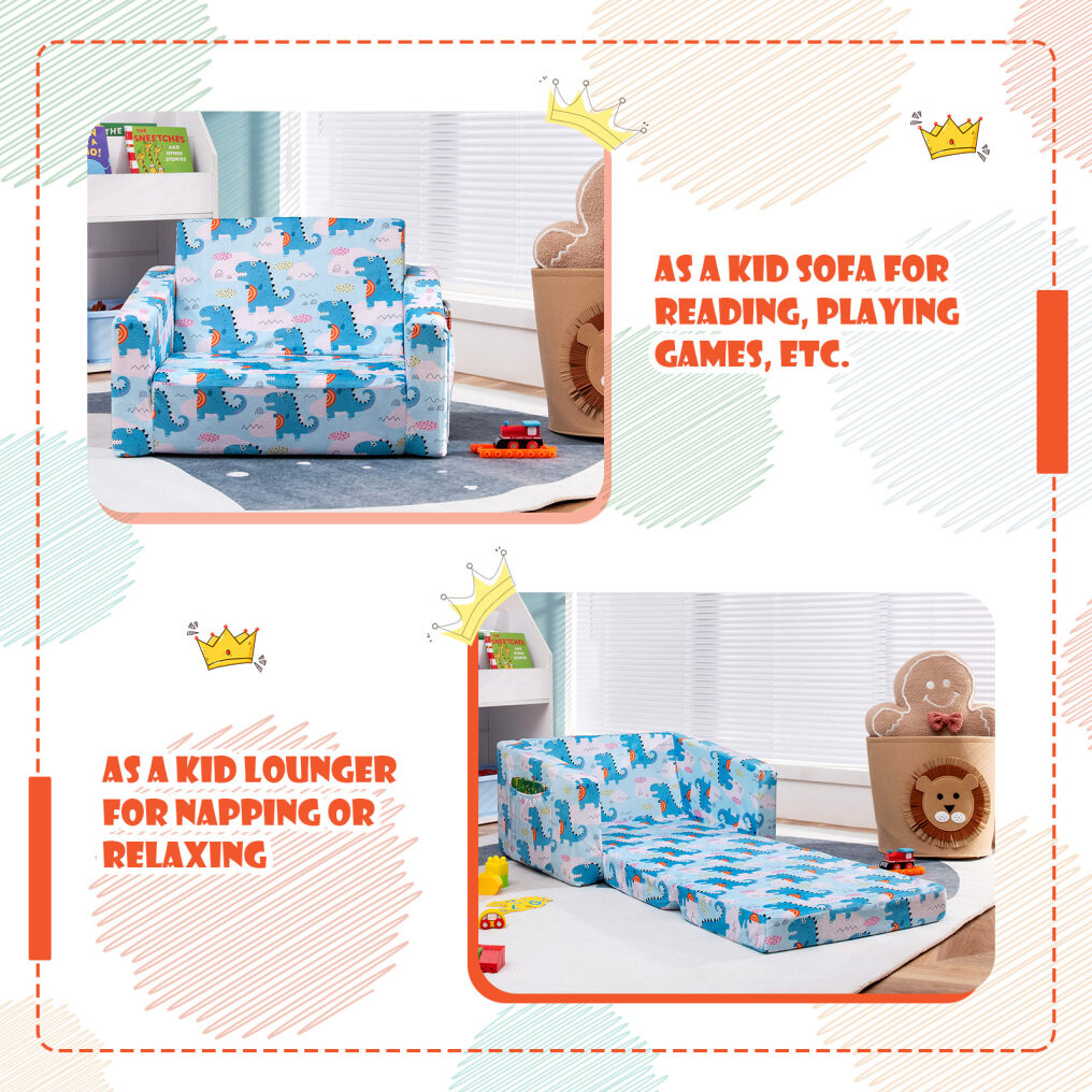 ● 2-in-1 Convertible Design: This kids sofa with 2-in-1 design can be easily converted into a lounger or a sleeper, satisfying kids' different needs. Thus, your kids can sit on the sofa to read stories, watch movies, play games and eat snacks. What's more, they can also lie down to relax themselves.