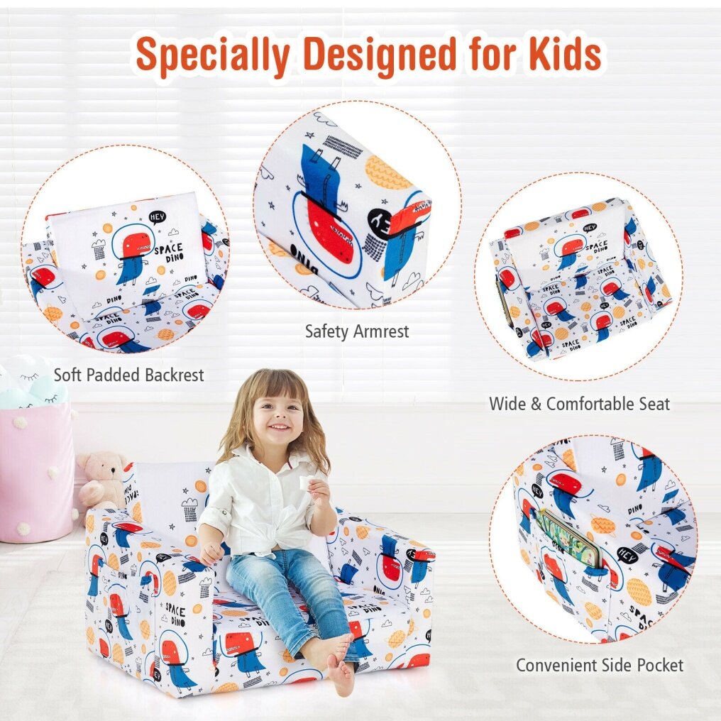 ● 2-in-1 Convertible Design: This kids sofa with 2-in-1 design can be easily converted into a lounger or a sleeper, satisfying kids' different needs. Thus, your kids can sit on the sofa to read stories, watch movies, play games and eat snacks. What's more, they can also lie down to relax themselves.