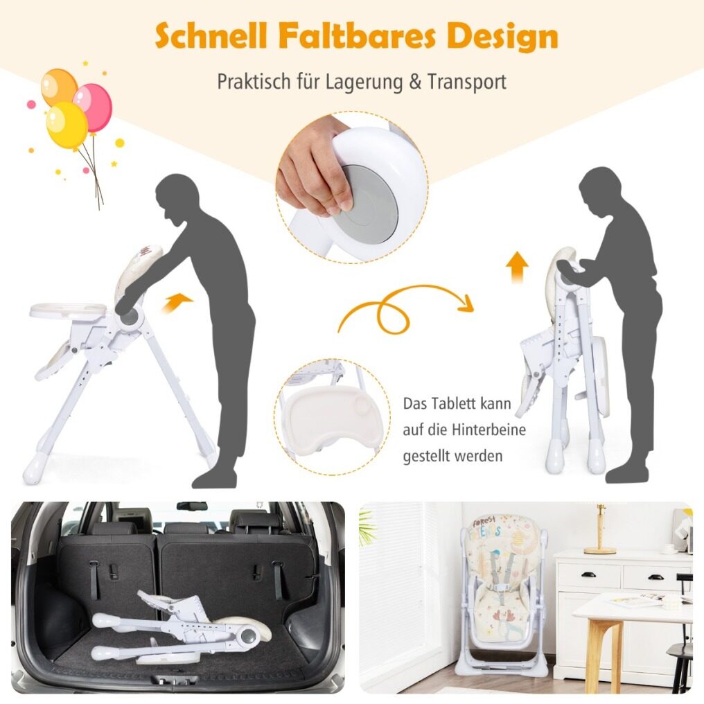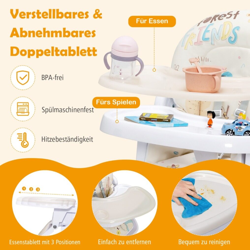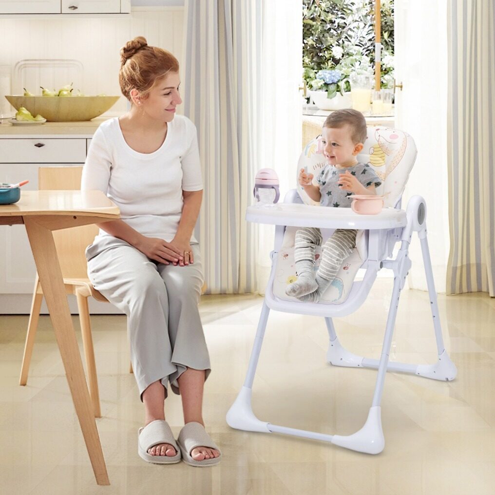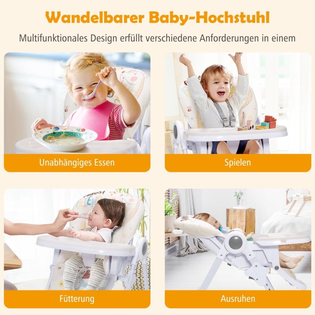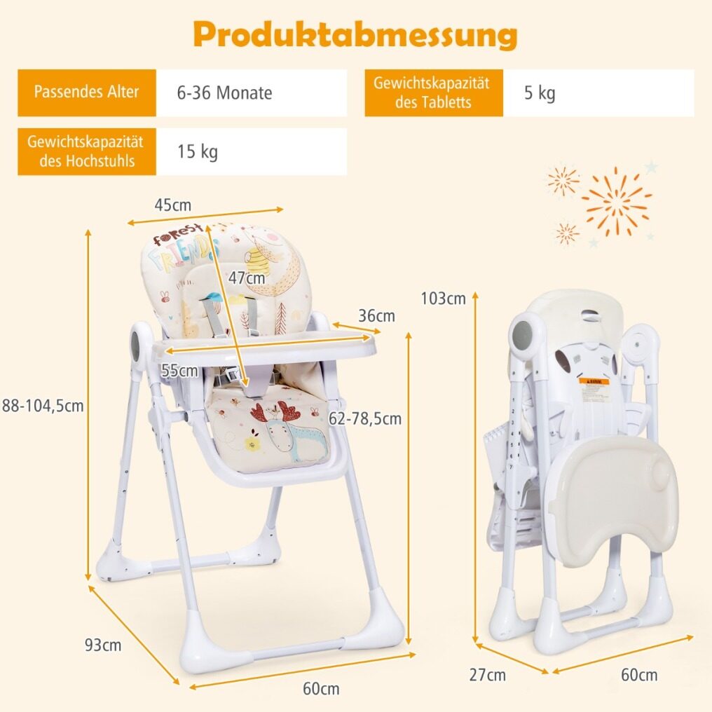 ● Multiple Adjustments for Growing Babies: Featuring 7-position heights, 3-position reclining backrest, 3-position tray, 4-setting footrest, parents can easily pull up the high chair to fit your kitchen countertop or dining chair. Every babies in different ages or heights will feel comfortable to have dinner, play and rest. Ideal gift for babies in 6-36 months.