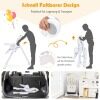 ● Detachable Double Tray: This foldable high chair comes with a 2-layer food tray, easy to take off. Therefore, parents can easily remove the food tray for cleaning after babies finish eating. The dinner tray is also dishwasher, convenient for daily use. Plus, the food tray can be fixed at rear legs of the chair when not in use.