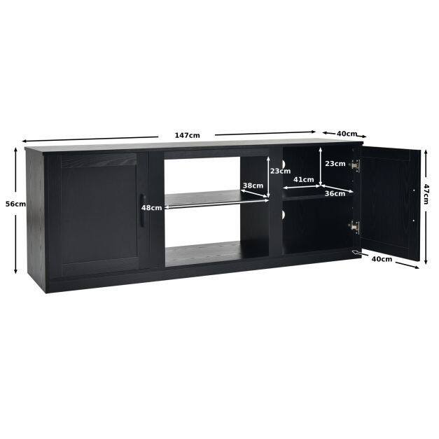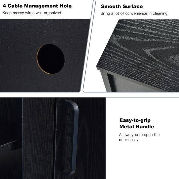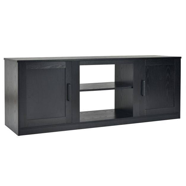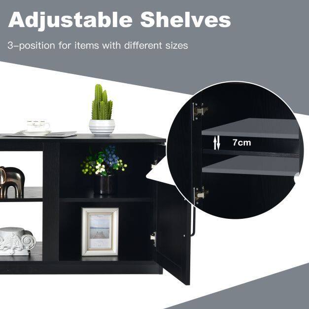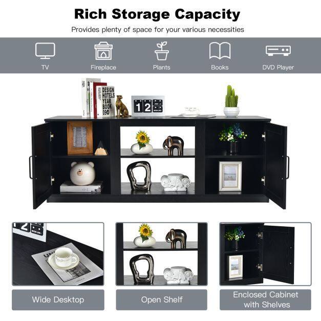 With a wide desktop, adjustable shelf and 2 enclosed cabinets, this console table are large enough to accommodate TVs up to 65" and books, DVD players and more. 3-position adjustable shelves are designed to put items of different sizes. You can place an 18" electric fireplace by removing the open shelf(3 heights adjusted ) in the middle cabinet. Crafted from superior engineered wood, the entertainment center is durable and stable for long-lasting use. Thanks to 4 cable management holes, you don't have to worry about the wires getting messy. What’s more, the convenient metal handles allow you to open the cabinet door easily.