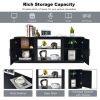 - 2 side cabinets with shelves and 1 open shelf for diverse storage